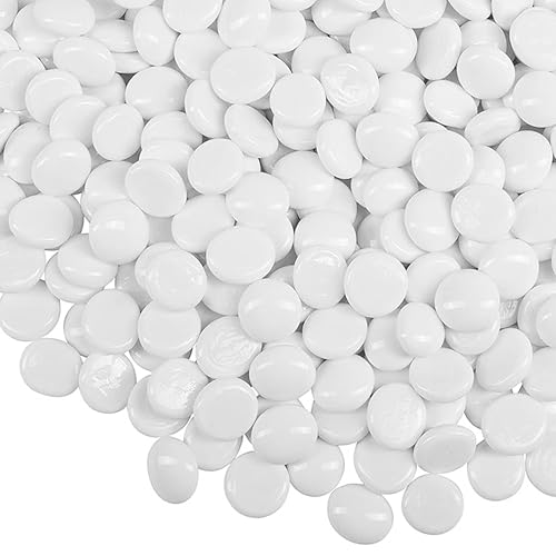 ARSUK Decorative Glass Pebbles Stones Beads Rounded Gems Flat Marble, Vase Filler, Fire Artificial Crystal Gemstones for Aquarium, Mosaic Tiles Vases Craft, Garden Flowerpot (180Pcs-White)