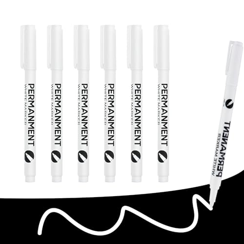 Cncedi 6pcs 1mm White Permanent Marker Pen, White Fabric Pen Quick Dry Waterproof Laundry Marker for Garden Clothes Wall Metal Wood Glass Plastic Tyre Stones Ceramic