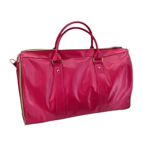 Qiantull 2-in-1 Travel Bag Foldable Travel Bags Convertible Luggage Garment Bags PU Leather Hand Luggage Bag Suit Storage Bag Foldy Bag Travel Bags for Women Rose Red