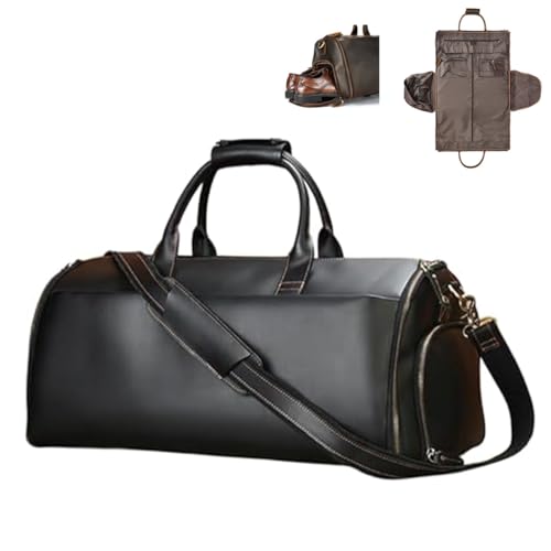 PU Leather Garment Duffel Bags with Shoe Compartment – Convertible Suit Organizer, Waterproof Travel Luggage | Folding Carry-On Unit Setup, Multi-Use Packing Layout for Camping Trip Suit Business