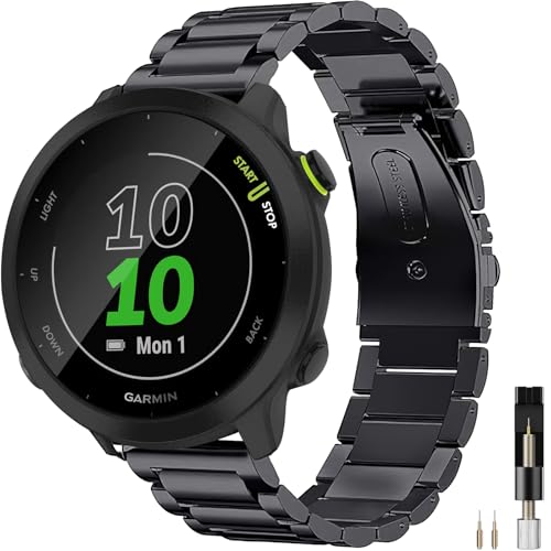 Miimall Metal Strap for Garmin Vivoactive 6/5/3, 20mm Forerunner 165/55/245/570 42mm Stainless Steel Strap, Venu/2 Plus/Sq2, Vivomove Sport/Trend/Luxe, Approach S12 S50 S44 S42 Band for Men-Black