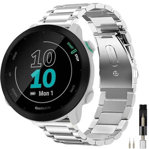 ahayo Stainless Steel Watch Strap for Garmin Vivoactive 5 / Venu 2 Plus/Venu Sq, 20mm Quick Release No Tool Needed Adjustable Length Metal Wrist Band for Garmin Forerunner 165 (Silver)