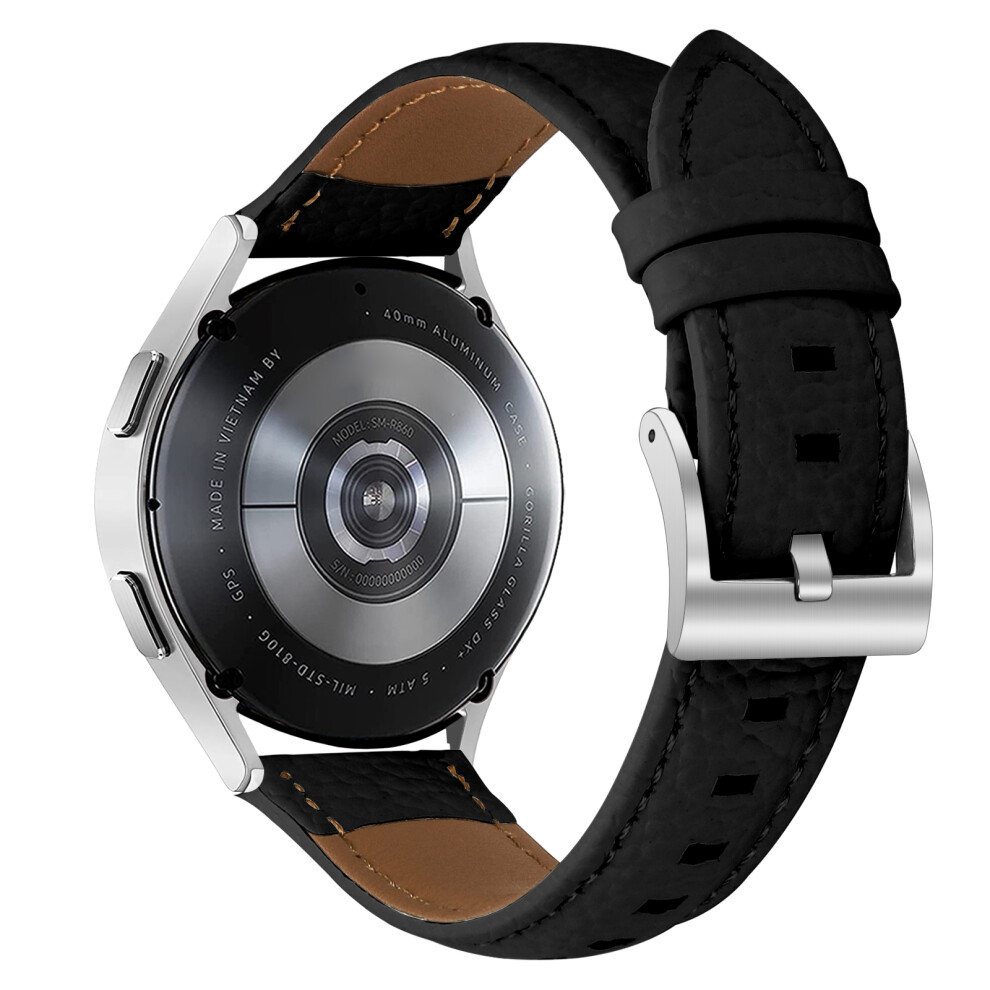 (Black) Litchi Texture Genuine Cow Leather Strap for Garmin Forerunner 165 / Forerunner 165 Music / D2 Air X