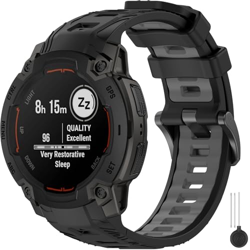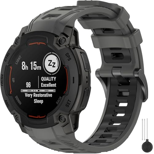 Miimall 22mm Strap Compatible with Garmin Instinct E 45mm, Breathable Lightweight Waterproof Soft Silicone Band, Adjustable Replacement Strap for Garmin Instinct E 45mm-Black Grey