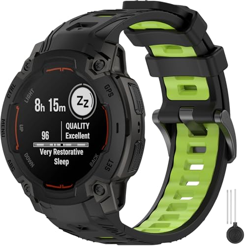 Miimall 22mm Strap Compatible with Garmin Instinct E 45mm, Breathable Lightweight Waterproof Soft Silicone Band, Adjustable Replacement Strap for Garmin Instinct E 45mm-Green Black