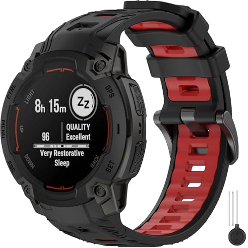 Miimall 22mm Strap Compatible with Garmin Instinct E 45mm, Breathable Lightweight Waterproof Soft Silicone Band, Adjustable Replacement Strap for Garmin Instinct E 45mm-Black Red
