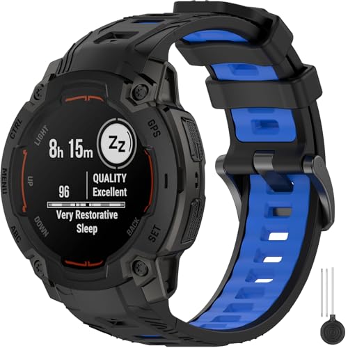 Miimall 22mm Strap Compatible with Garmin Instinct E 45mm, Breathable Lightweight Waterproof Soft Silicone Band, Adjustable Replacement Strap for Garmin Instinct E 45mm-Black Blue