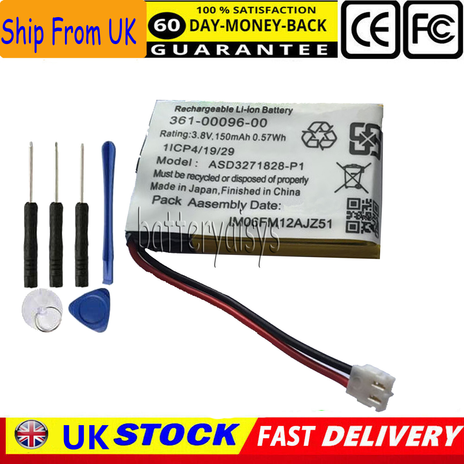 Battery for Garmin Fenix 5S Watch Battery PN:361-00096-00 Voltage:3.8V 150mAh
