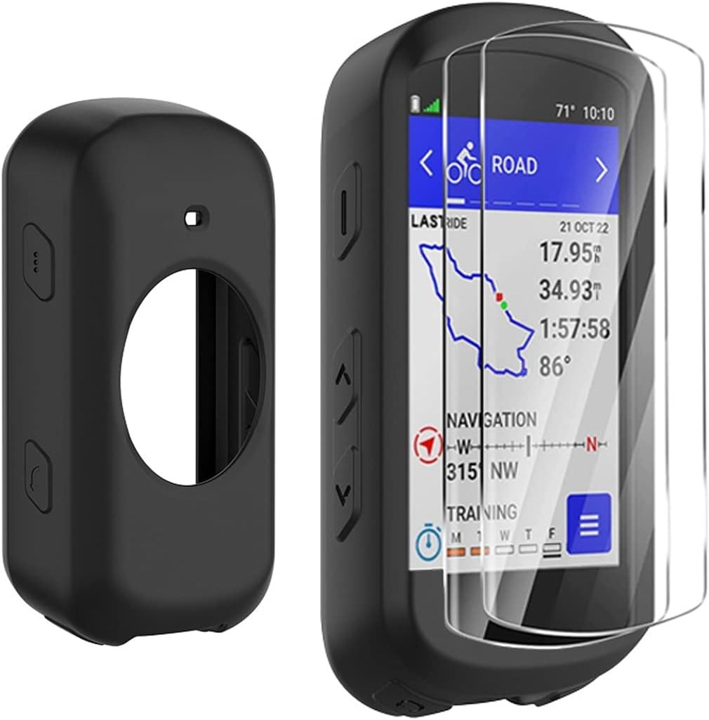 Tidevib Silicone Case Cover with Tempered Glass Screen Protector for Garmin Edge 530, for Garmin 530 For Bike Computer, Black