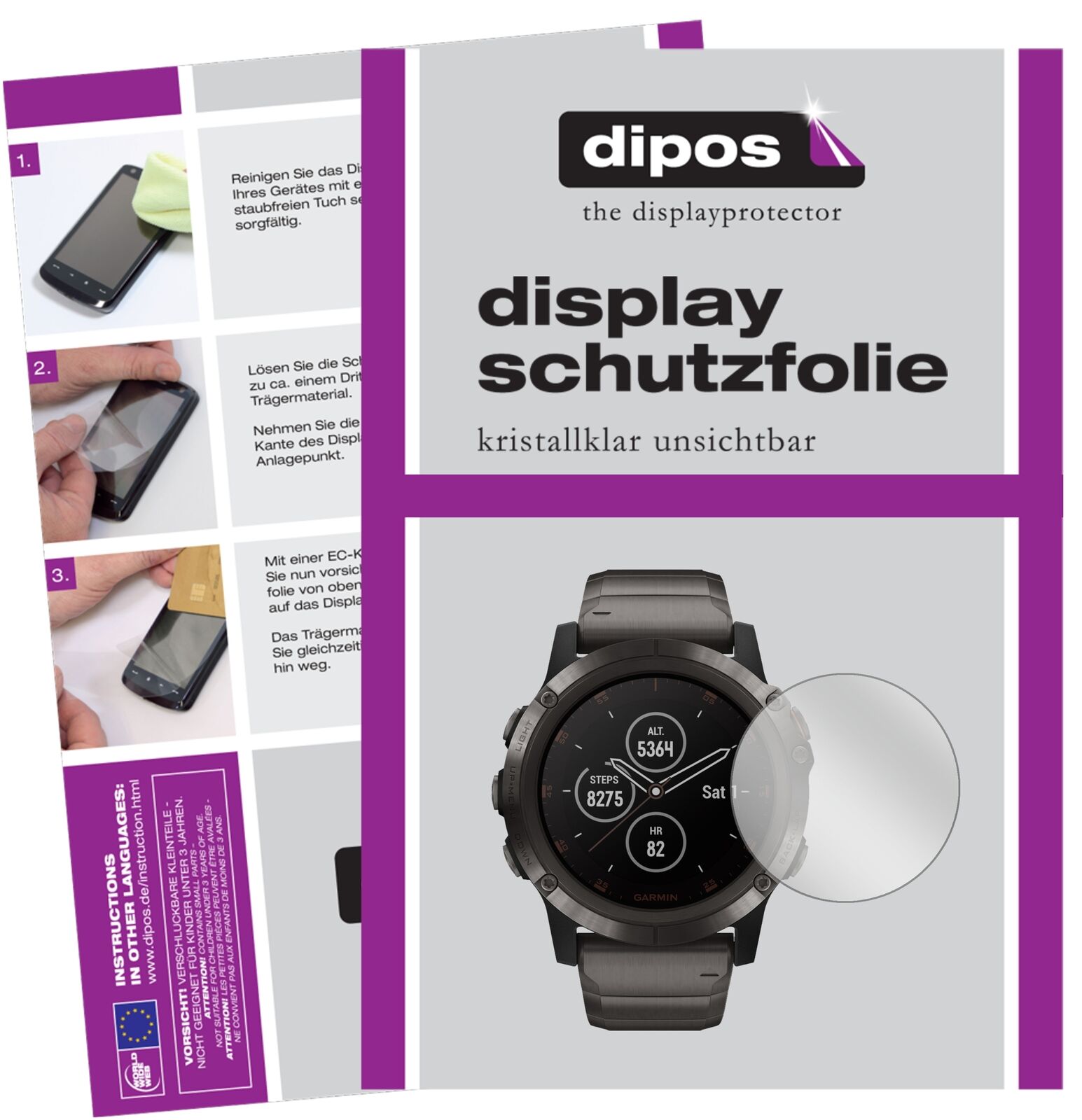 dipos I 6x Screen Protector compatible with Garmin fenix 5 Plus (47mm) Protection Films clear