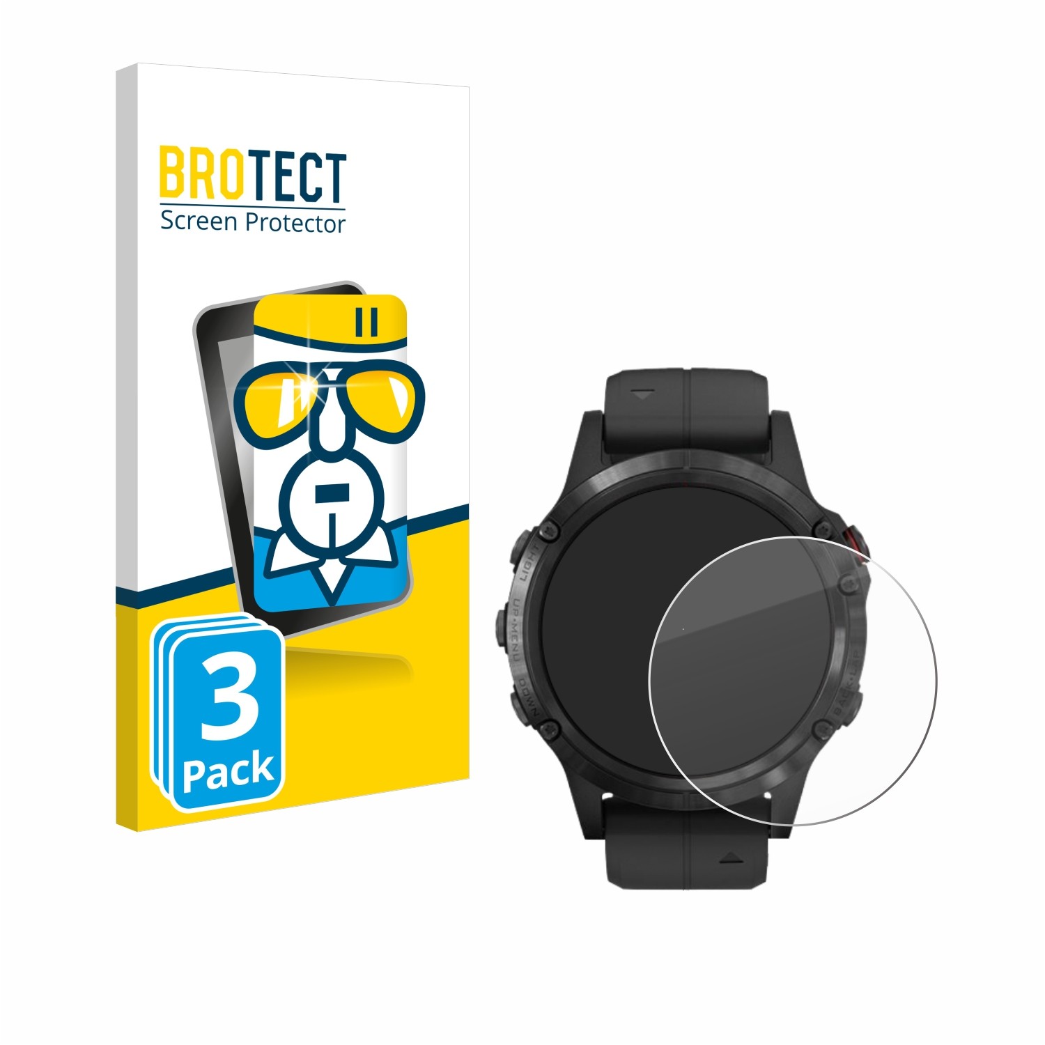 brotect Glass Screen Protector Film compatible with Garmin Fenix 5 Plus (47 mm) (3 Pack) - Glass-Foil 9H Protection [Scratch Resistant, High Clarity]