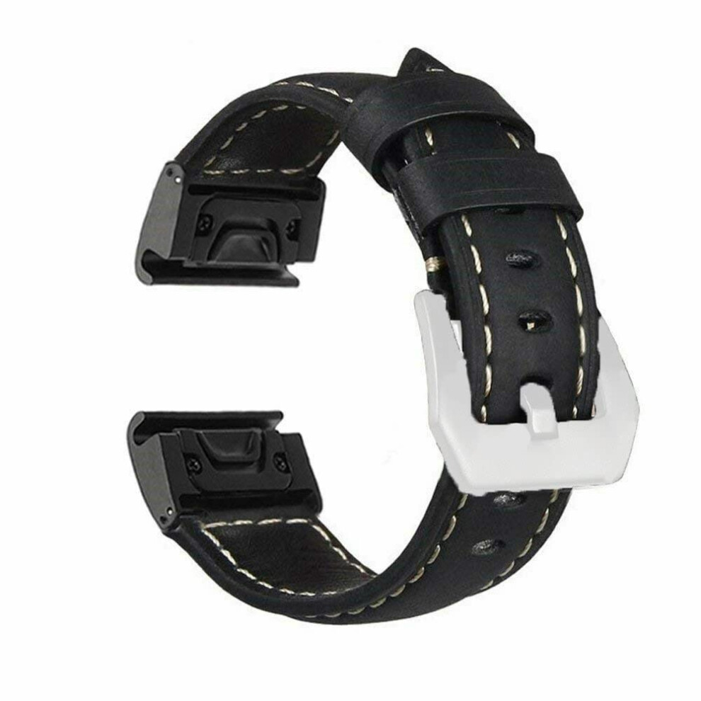 Leather Strap 22mm Quick Release Band for Garmin Fenix 5 5 Plus 6 6X Pro Black Replacement