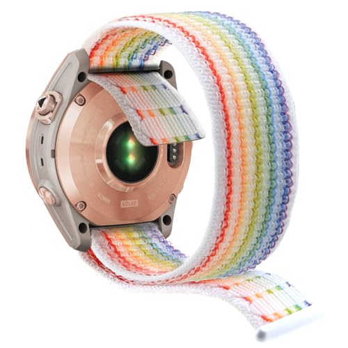 YOOSIDE Hook and Loop Nylon Watch Strap for Fenix 7S / 6S / 5S / Instinct 2S, 20mm Quick Dry Ultralight Sport Wrist Band for Garmin epix Pro 42mm, Descent Mk2S (Rainbow)
