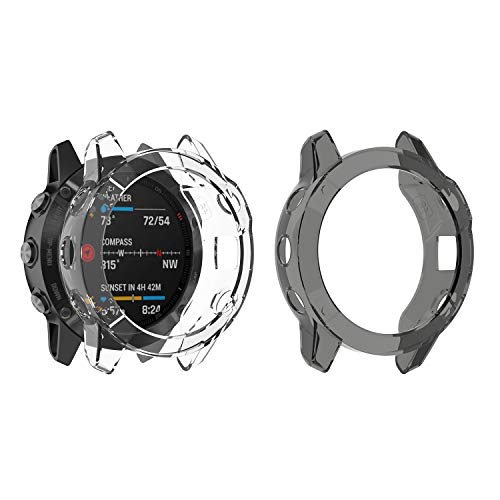 Compatible for Garmin Fenix 6 Pro Case, Blueshaw Silicone TPU Case Cover Compatible for Garmin Fenix 6 Pro/Garmin Fenix 6 / Garmin Fenix 6 Sapphire (Fenix 6S Series, Black+Clear)