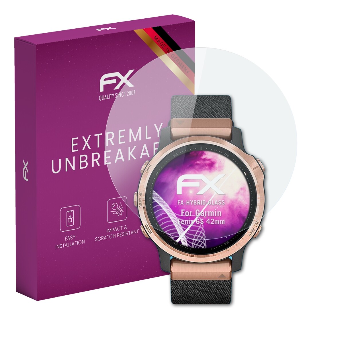 atFoliX Glass Protector for Garmin Fenix 6S 42mm 9H Hybrid-Glass