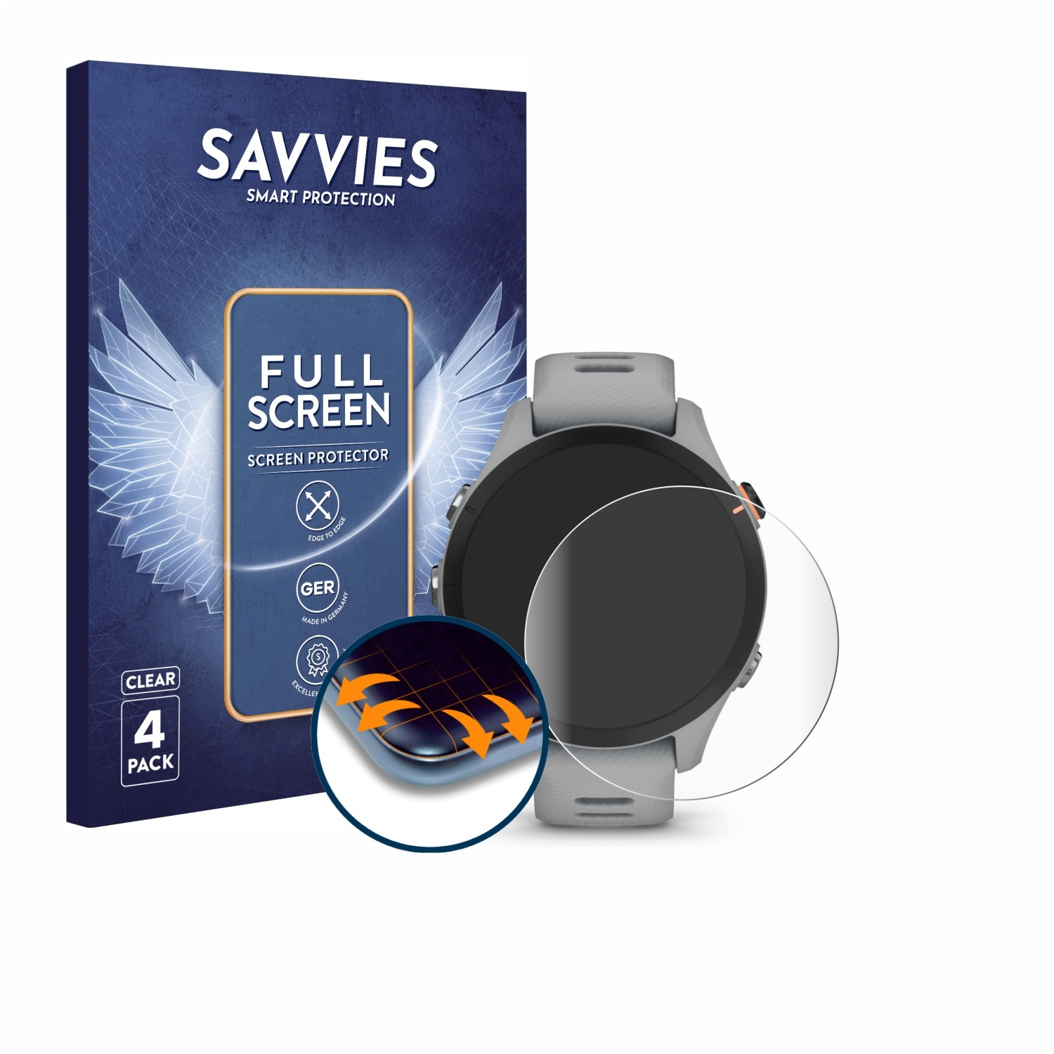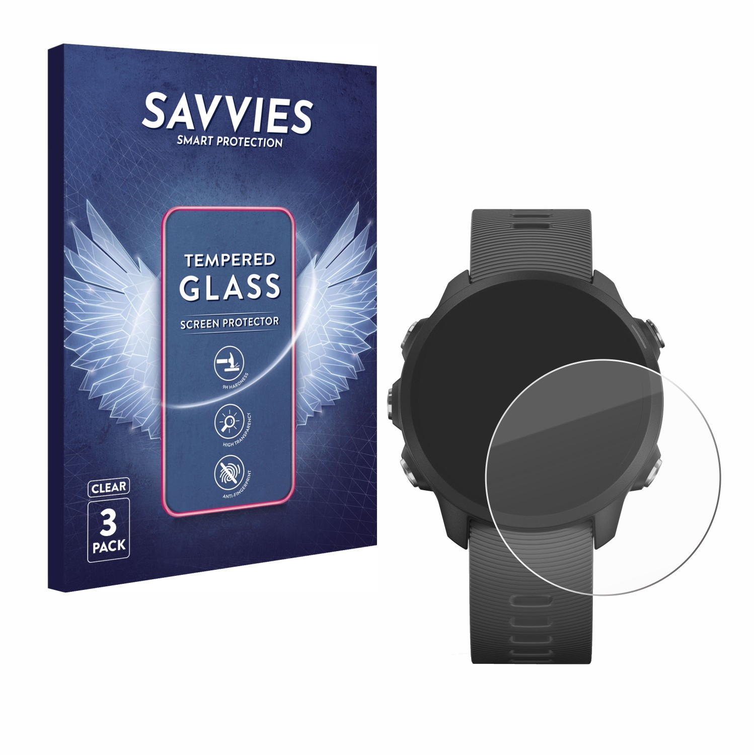 Savvies 3 Pack Tempered Glass Film compatible with Garmin Forerunner 255/255 Music 9H Screen Protector, Glass-Foil, HD-Clear, Bubble-Free, Anti-Fingerprint, Anti-Scratch, Armor Protection Film