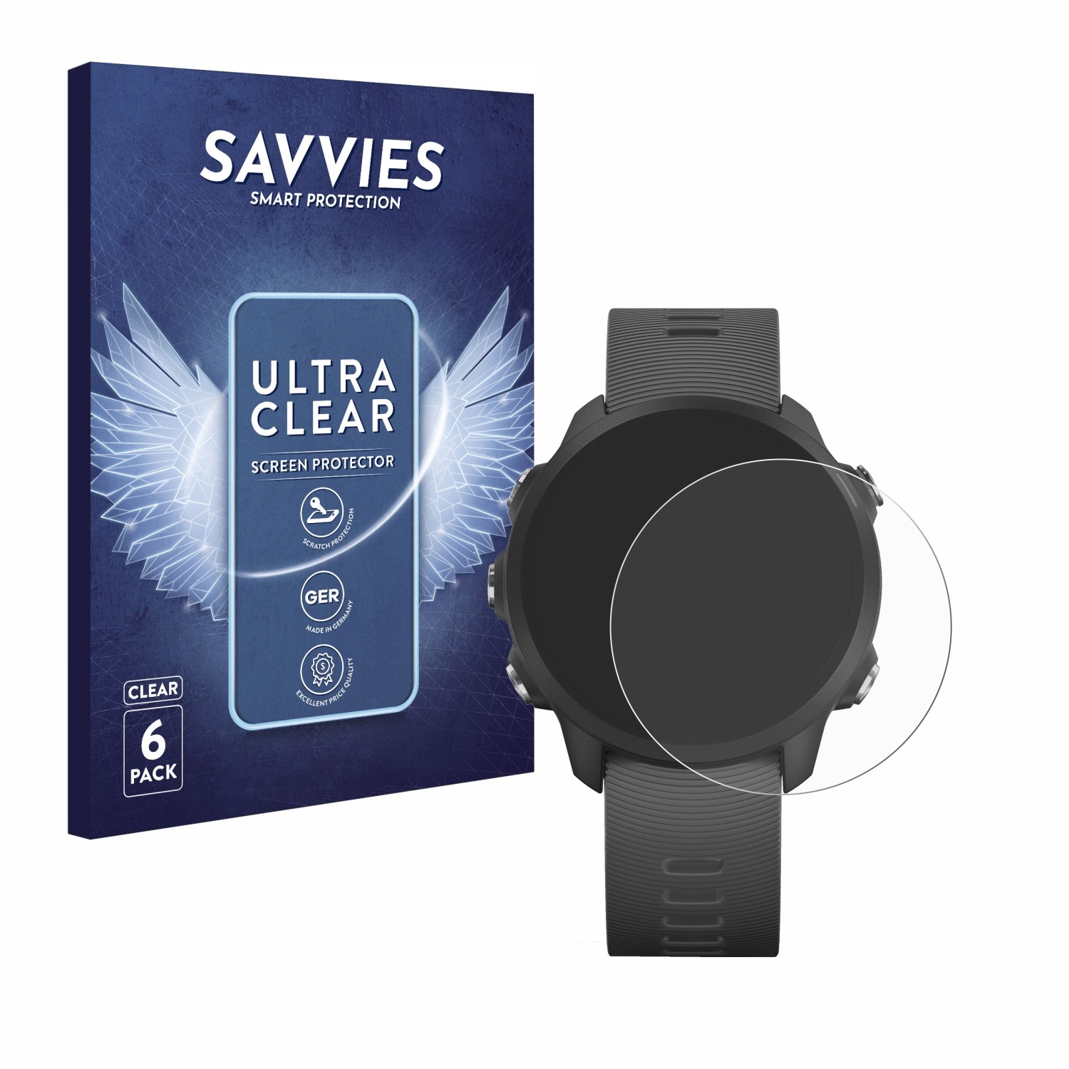 Savvies 6 Pack Screen Protector compatible with Garmin Forerunner 245/245 Music / 45 Protection Film Clear