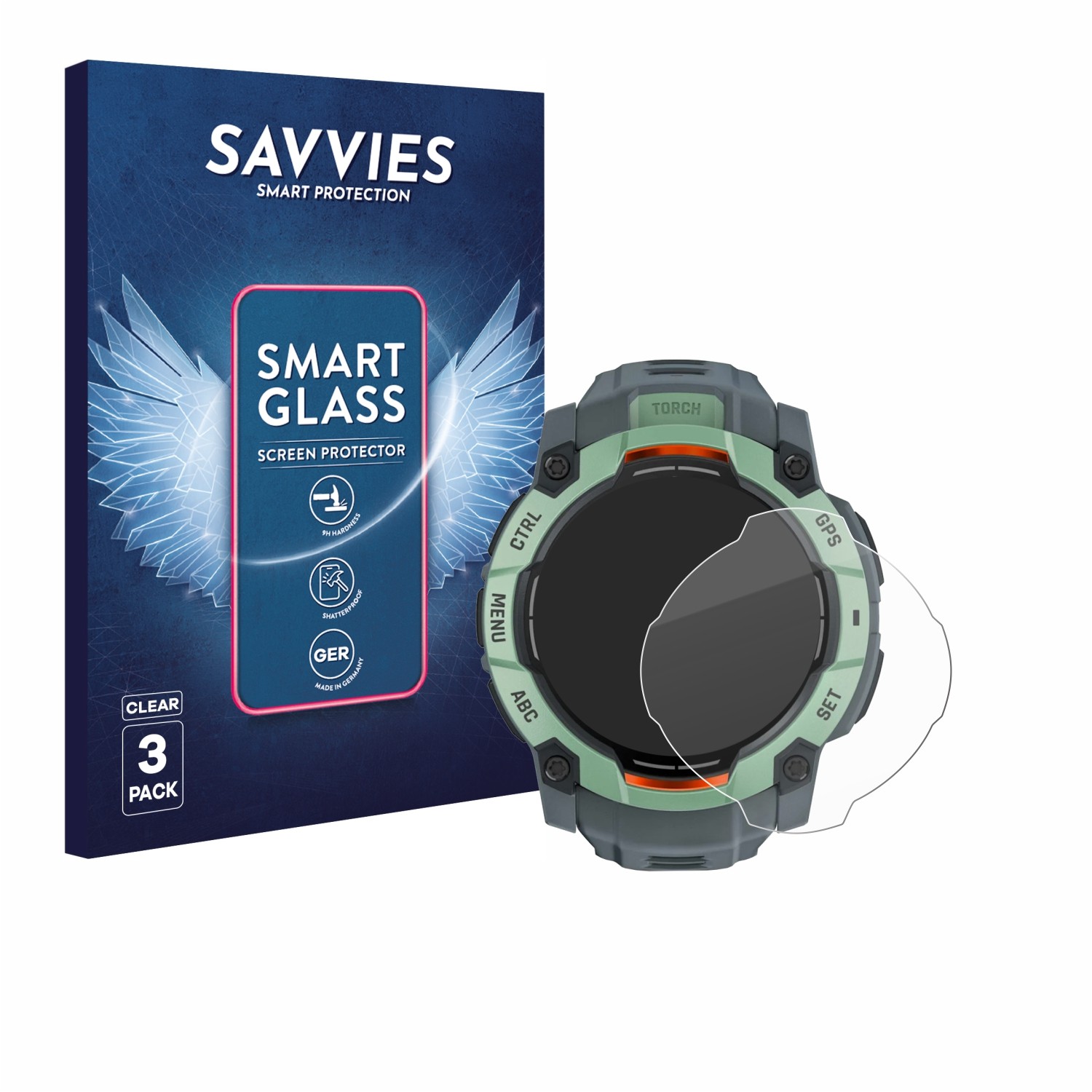Savvies 3 Pack Tempered Glass Film compatible with Garmin Instinct 3 AMOLED (45 mm) 9H Screen Protector, Glass-Foil, HD-Clear, Bubble-Free, Anti-Fingerprint, Anti-Scratch, Armor Protection Film