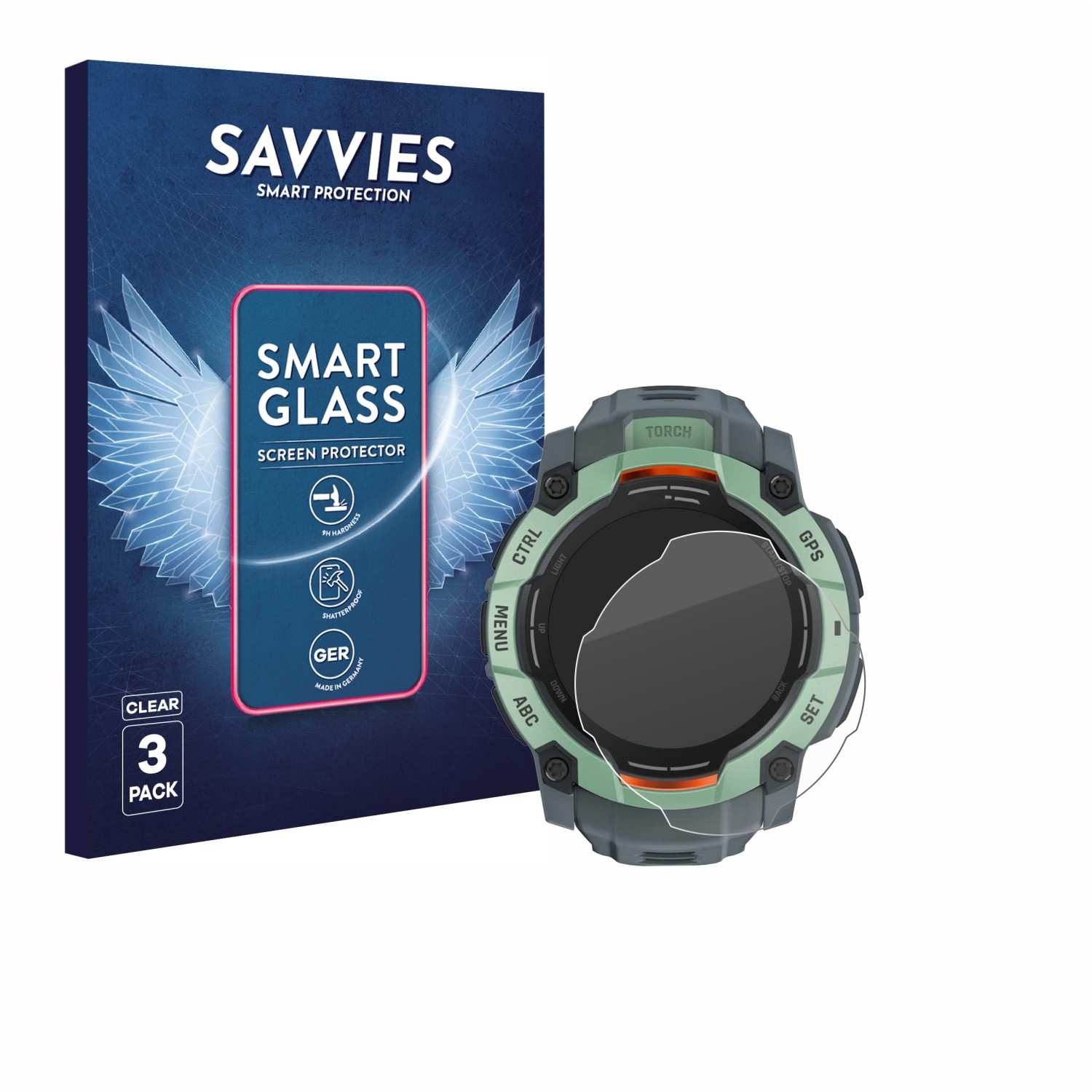 Savvies 3 Pack Tempered Glass Film compatible with Garmin Instinct 3 AMOLED (50 mm) 9H Screen Protector, Glass-Foil, HD-Clear, Bubble-Free, Anti-Fingerprint, Anti-Scratch, Armor Protection Film