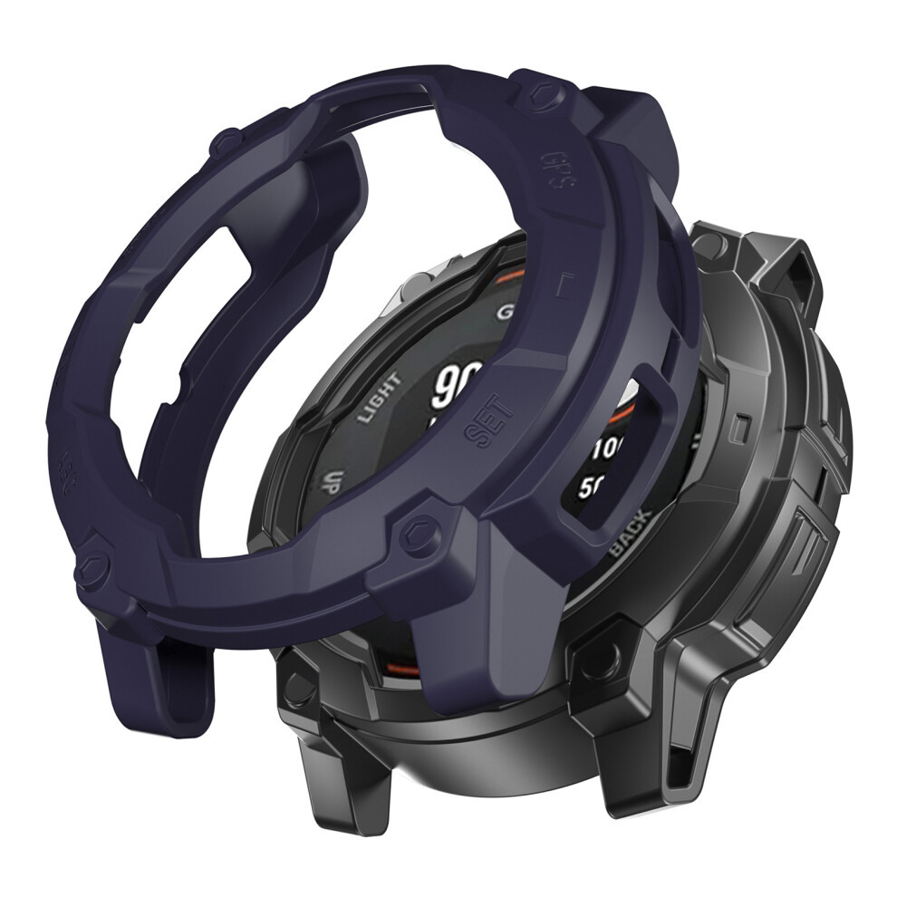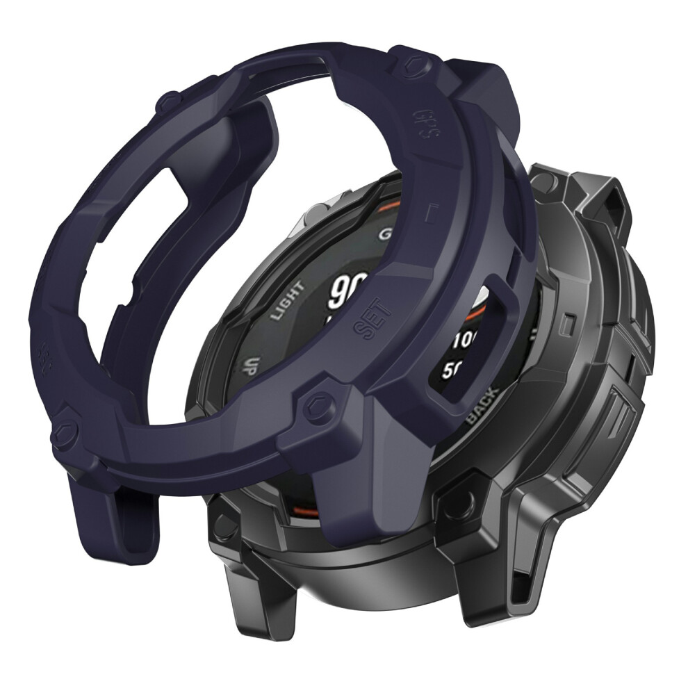 (Midnight Blue) For Garmin Instinct 3 Solar 50mm Protective Case Rugged Armor TPU Shell Watch Cover