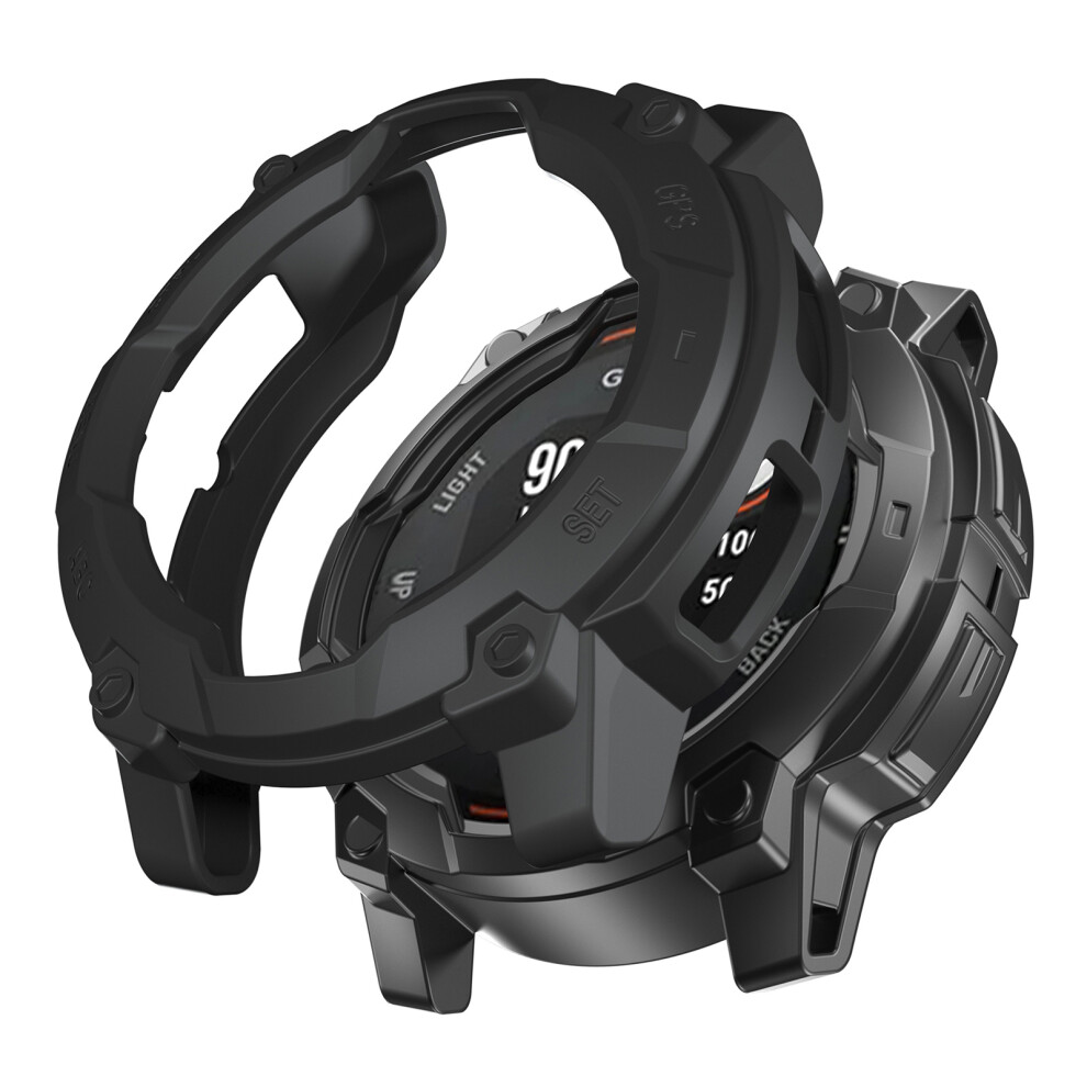 (Black) For Garmin Instinct 3 50mm / Solar 50mm Armor Watch Case Shockproof TPU Rugged Protective Cover