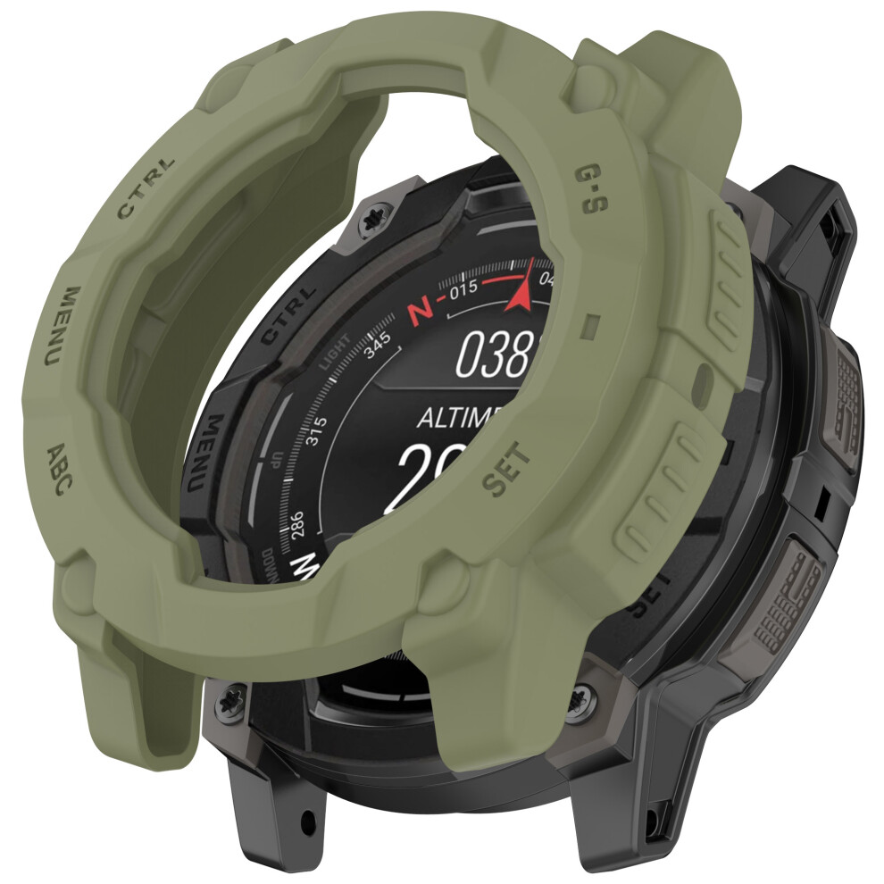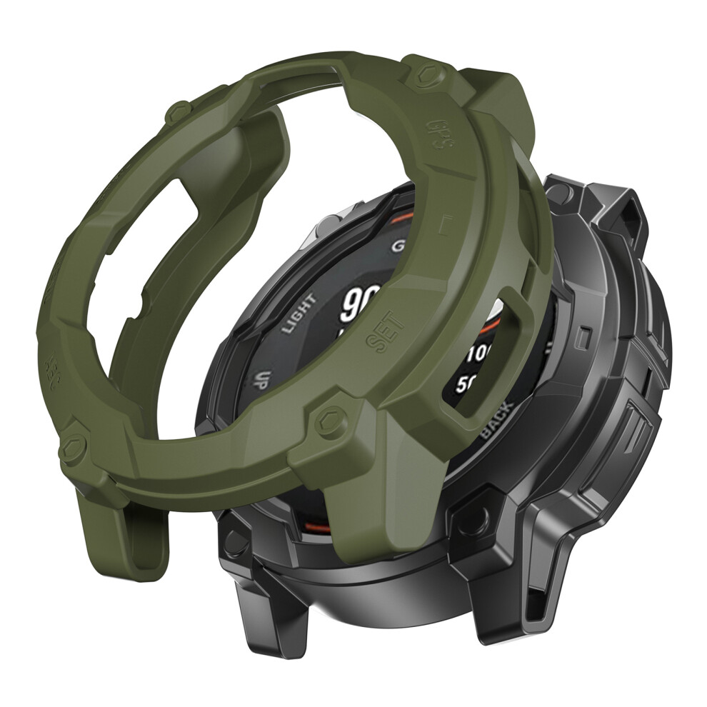 (Green) For Garmin Instinct 3 Solar 50mm Protective Case Rugged Armor TPU Shell Watch Cover