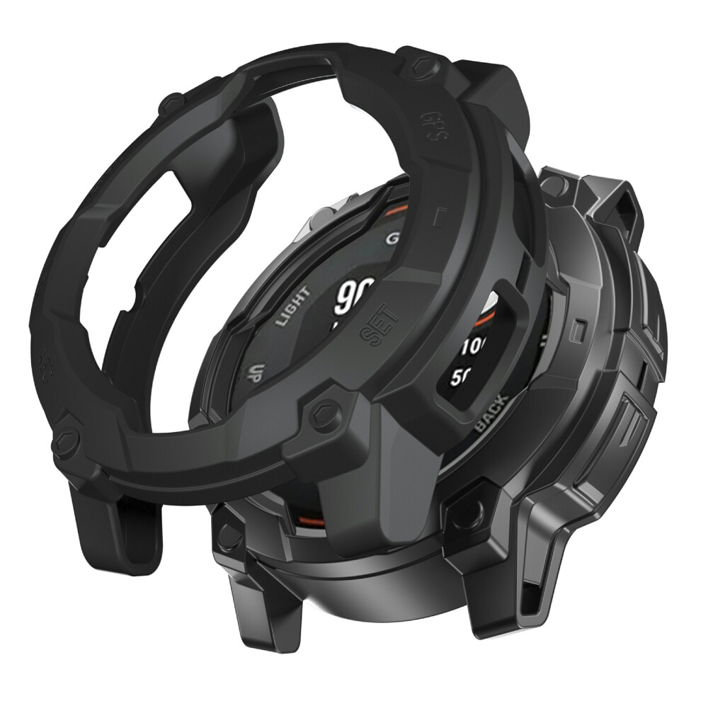 (Black) For Garmin Instinct 3 Solar 50mm Protective Case Rugged Armor TPU Shell Watch Cover