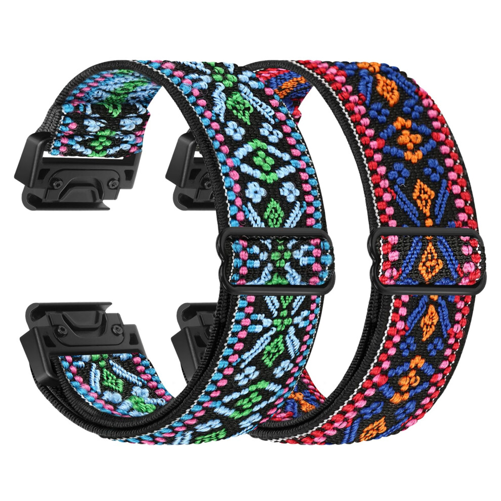 Elastic Watch Strap For Garmin Fenix 8 43mm/Epix Pro 42mm, 20mm QuickFit Nylon Band, 2 Pack, Wave Blue And Wave Red