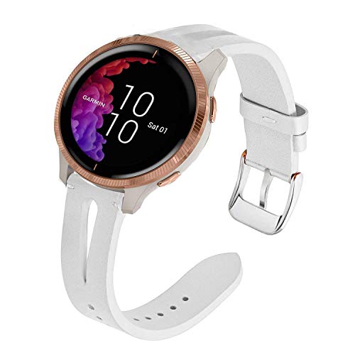 Compatible for Garmin Venu Bands, LvBu Slim Vintage Leather Strap Replacement for Women, Man, Wristband Accessories Compatible with Garmin Venu Smartwatch (White)