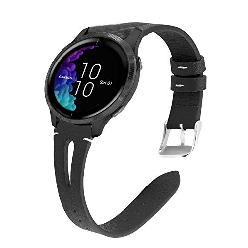 Compatible for Garmin Venu Bands, LvBu Slim Vintage Leather Strap Replacement for Women, Man, Wristband Accessories Compatible with Garmin Venu Smartwatch (Black)