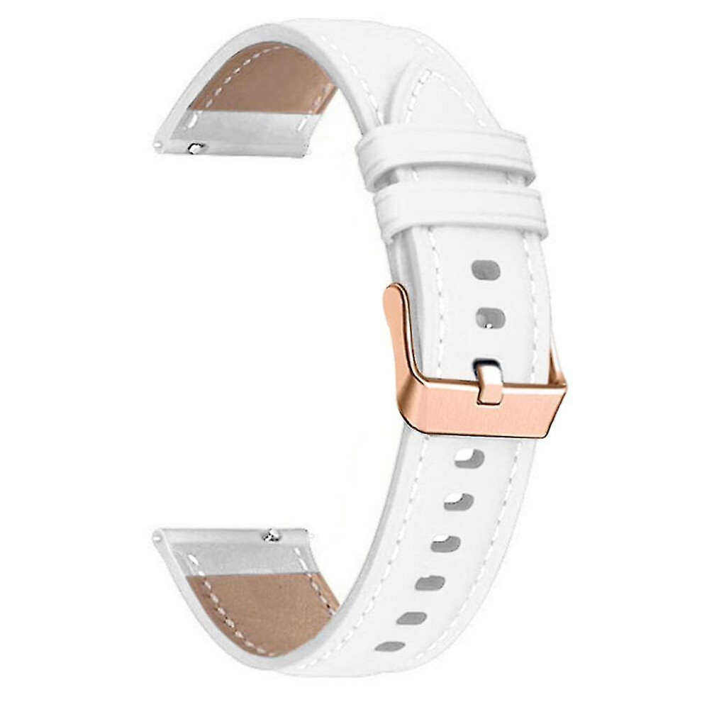 (White) For Garmin Forerunner 265S 255S Venu 2S Watch Band 18mm Genuine Cow Leather Wrist Strap, Rose Gold Buckle
