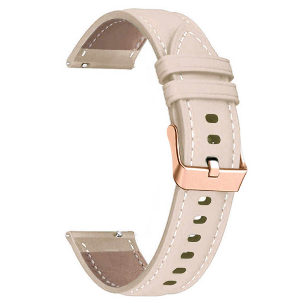(Apricot) For Garmin Forerunner 265S 255S Venu 2S Watch Band 18mm Genuine Cow Leather Wrist Strap, Rose Gold Buckle