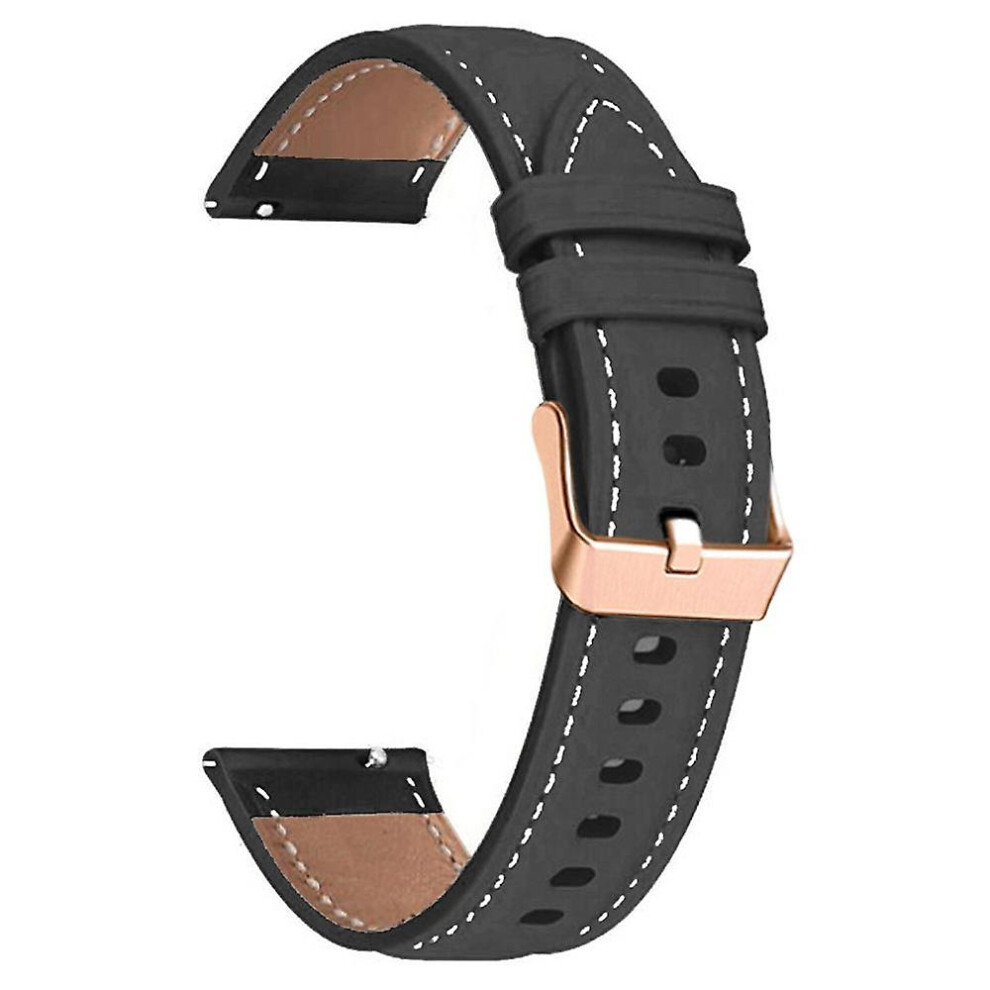 (Black) For Garmin Forerunner 265S 255S Venu 2S Watch Band 18mm Genuine Cow Leather Wrist Strap, Rose Gold Buckle