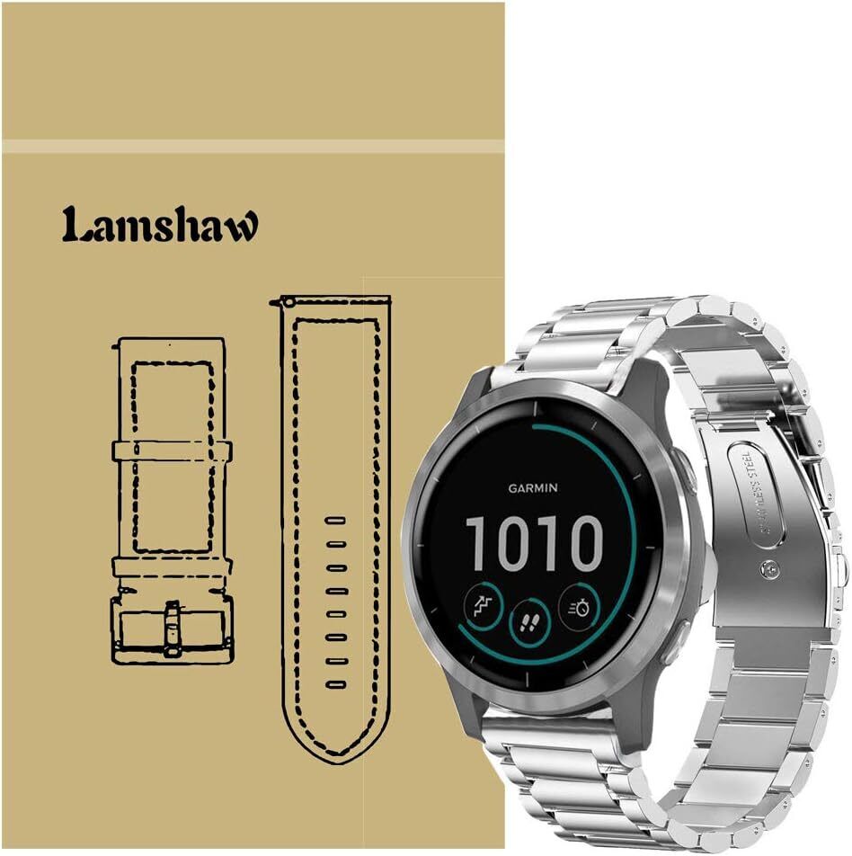 Compatible for Garmin vivoactive 4 Band, LvBu Quick Release Stainless Steel Met