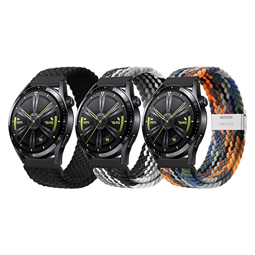 XMUXI 3 Pack Nylon 22mm Watch Strap Compatible with Huawei Watch GT4/GT3/GT2e/GT2 46mm, Samsung Galaxy Watch 3 45mm/Gear S3, Replacement Straps for Garmin Vivoactive 4/Venu 2 Strap (#1/7/16)