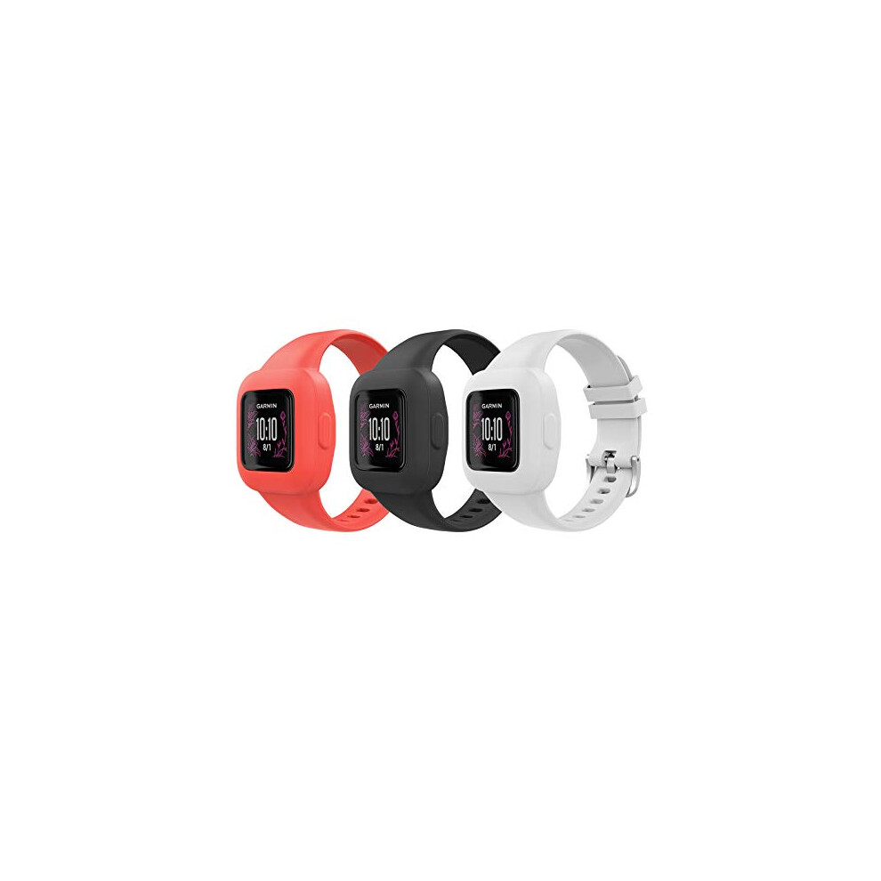 3-Pack Strap Compatible with Garmin Vivofit jr. 3 Fitness Tracker for Kids, Soft Silicone Adjustable Replacement Band Wristband Bracelet, Black & Red