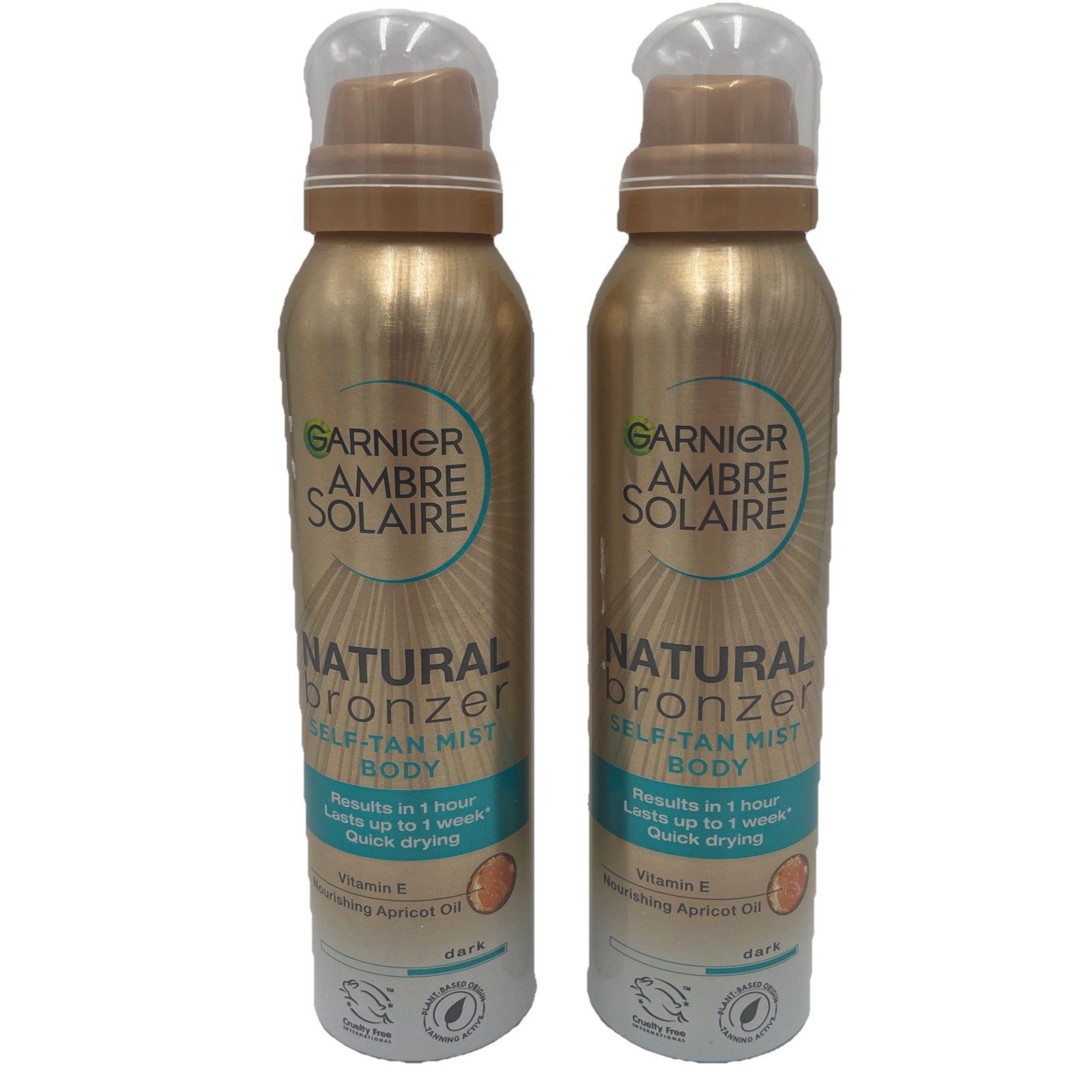 2 x 150ml Garnier Ambre Solaire Natural Bronzer Dark Self Tan Mist-BODY