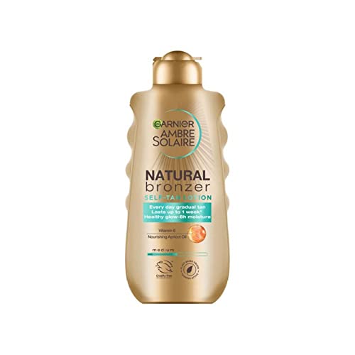 Garnier Ambre Solaire Natural Bronzer Easy Self Tan Lotion, natural & streak free fake tan, hydrates & nourishes skin with Apricot Oil & Vitamin E, graudal tan & glow, lasts up to 1 week, 175ml