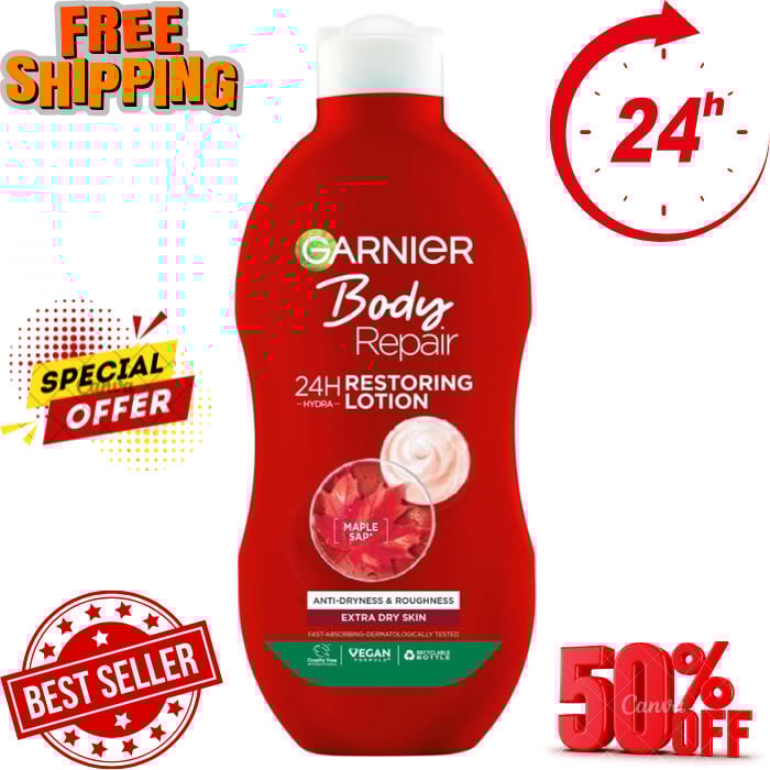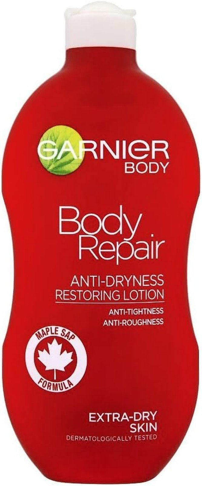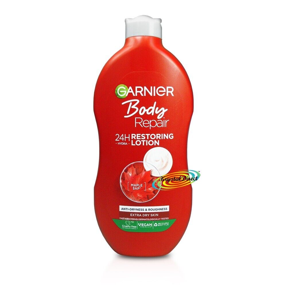 Garnier Body Repair Restoring Moisturiser 400ml, With Nourishing & Soothing Canadian Maple Sap, 24 Hour Hydration, For Extra Dry Rough Skin, Fast Absorbing & Non-Greasy