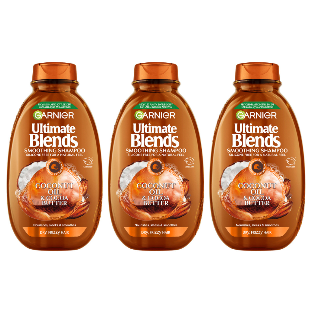 3 x Garnier Ultimate Blends Coconut Oil & Cocoa Butter Shampoo 400ml