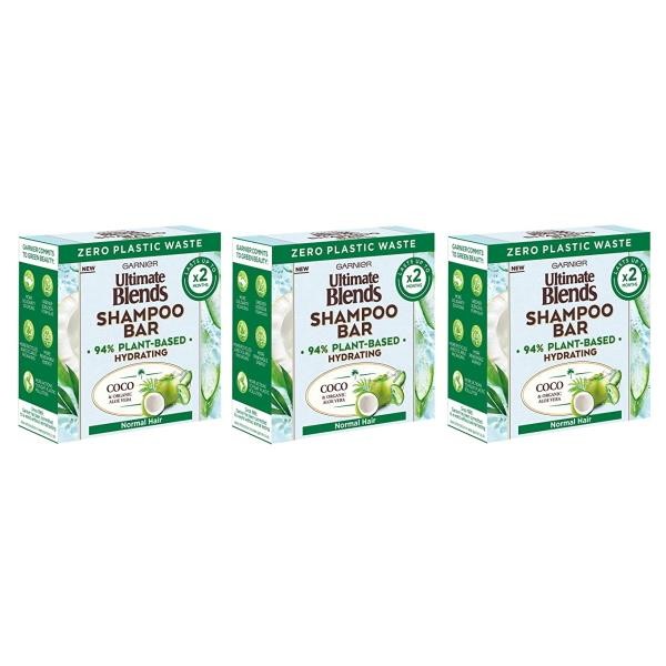 3 x Garnier Ultimate Blends Shampoo Bar Hydrating Coconut & Aloe Vera 60g