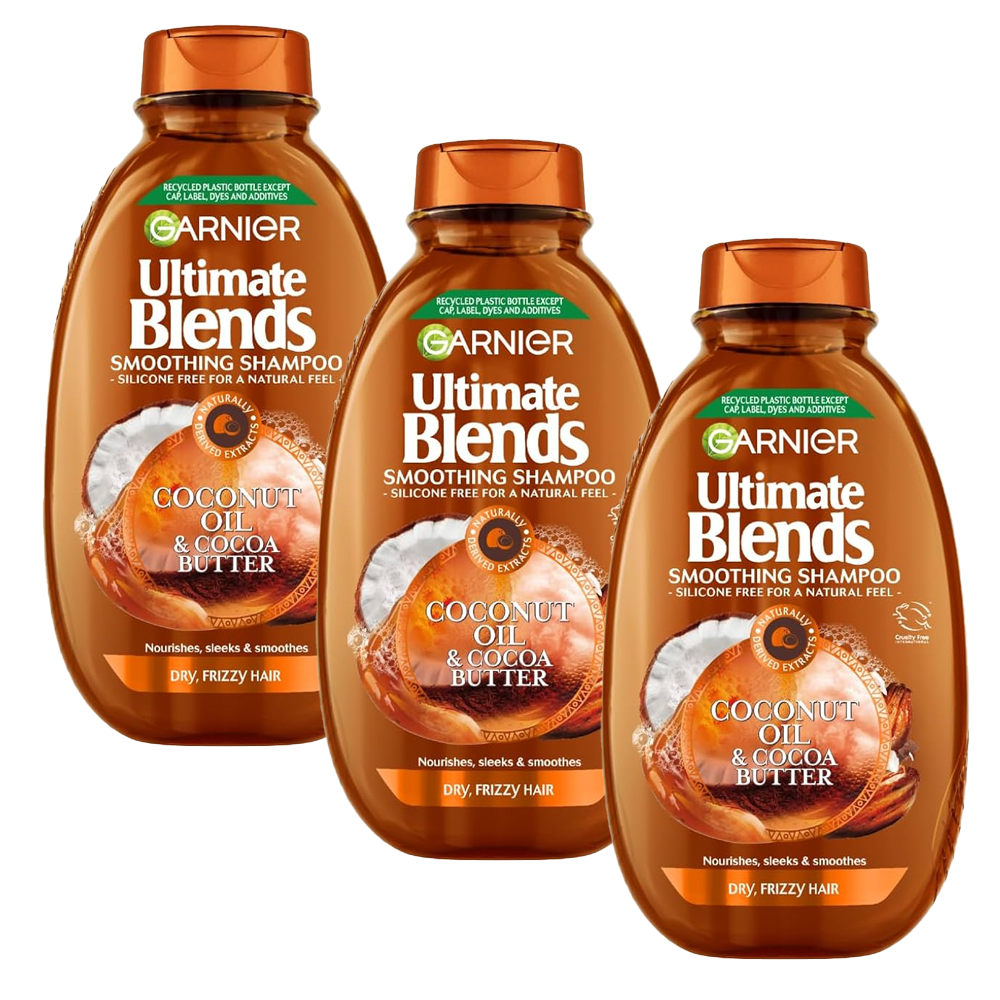 3 x Garnier Ultimate Blends Coconut Oil & Cocoa Butter Shampoo 400ml