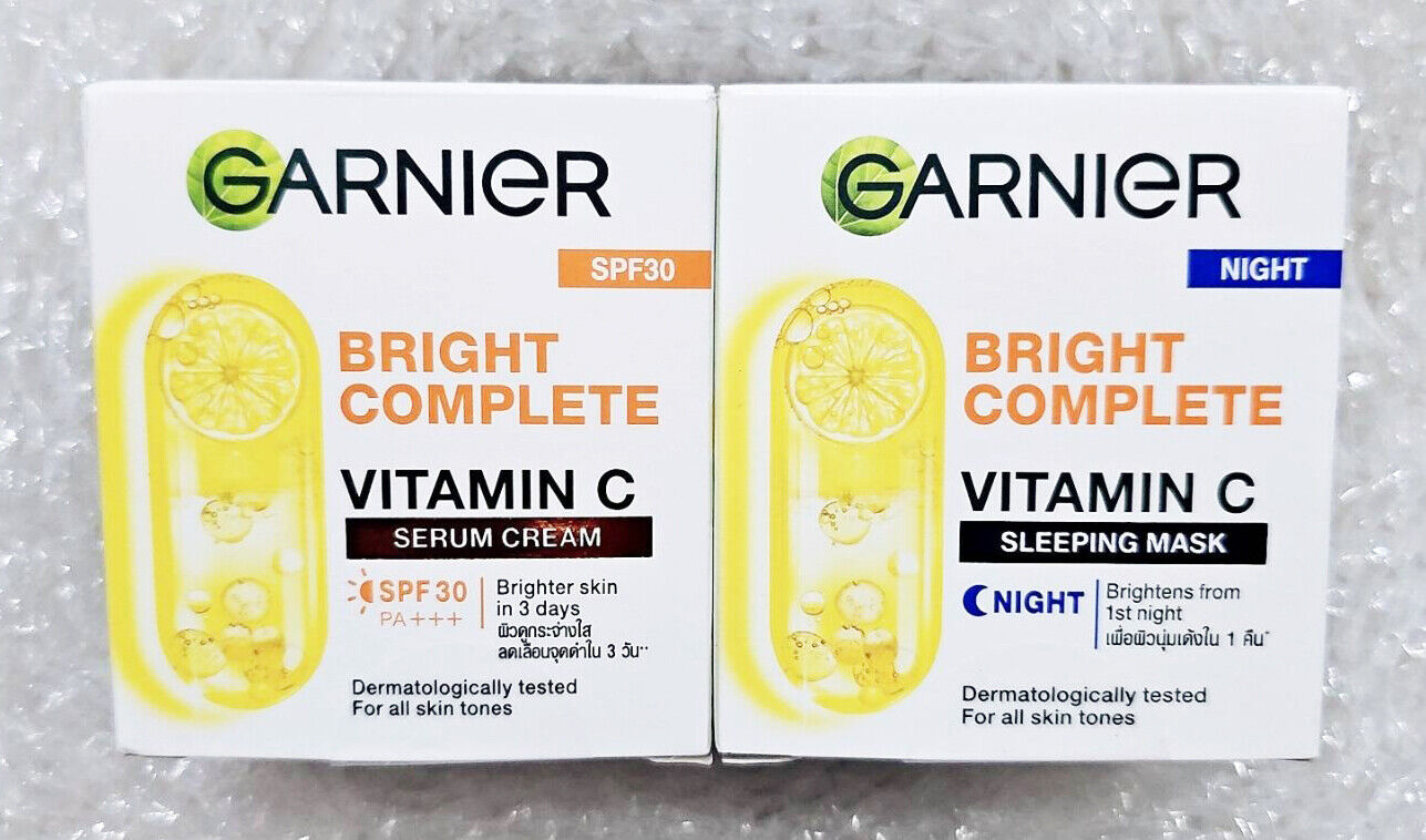 Set of Garnier Bright Complete Vitamin C Day and Night Serum Cream 50ml.