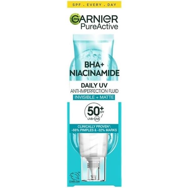Garnier Daily UV Niacinamide, BHA & AHA, Invisible + Matte - Anti-Imperfection Fluid SPF50+, 40ml