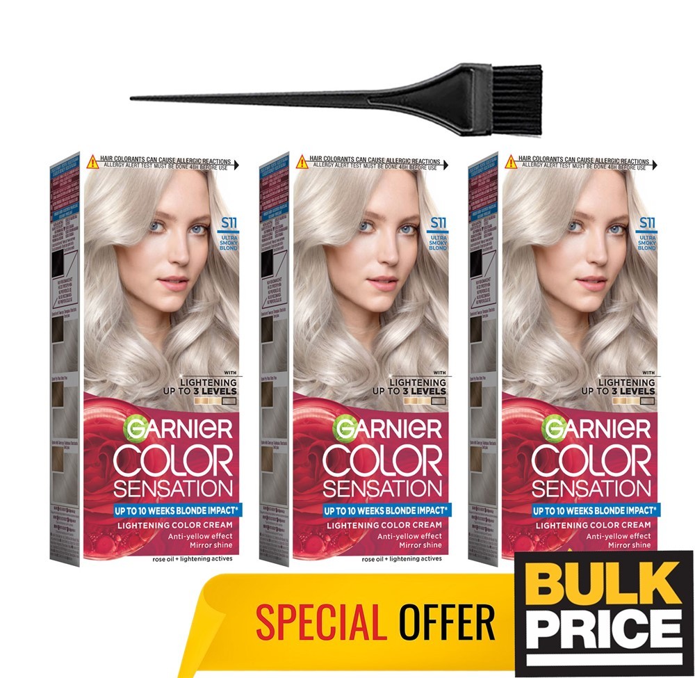 Garnier Color Sensation S11 Ultra Smoky Blonde Hair Color Cream Cool Ashy 3-Pack