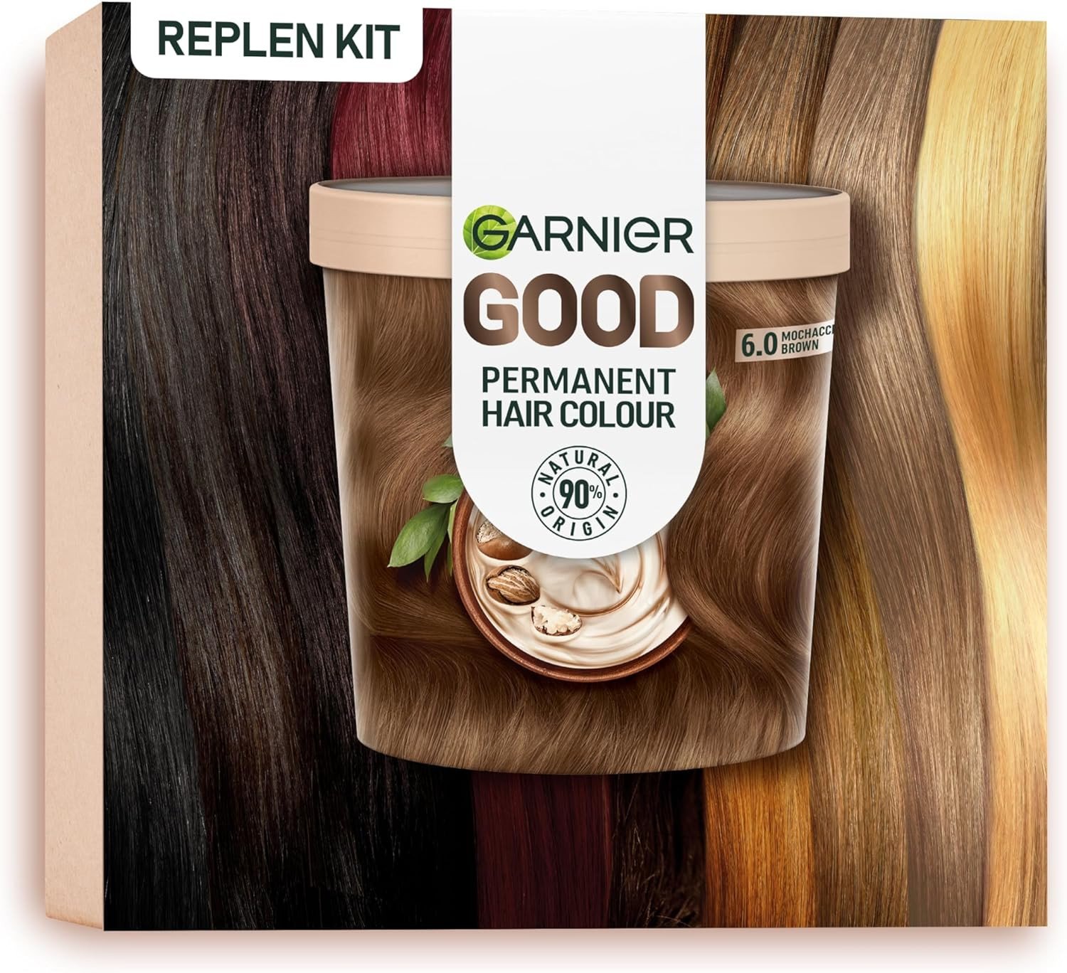 Garnier GOOD Permanent Hair Dye (Shade: 6.0 Mochaccino Brown) for vibrant, lasting colour