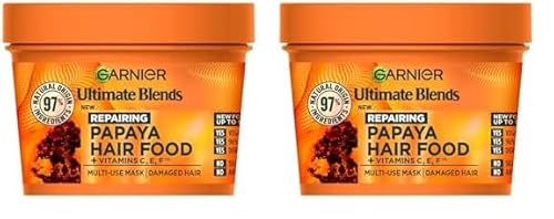 Garnier Hair Food 3-in-1 Hair Treatment Mask, Intensely Nourishes and Repairs Hair, For Damaged Hair, No Silicones, Vegan Formula, Papaya, Ultimate Blends, 400ml (Pack of 2)
