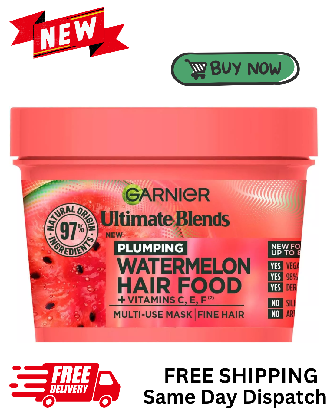 Garnier Hair Food Watermelon 400ml 3-in-1 Fine Hair Mask Vegan Silicone-Free UK