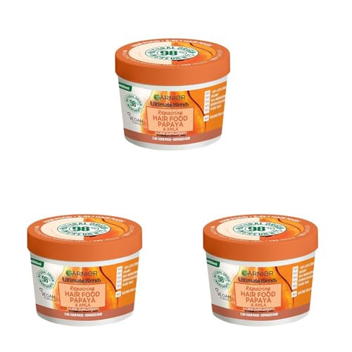 Garnier Hair Food 3-in-1 Hair Treatment Mask, Intensely Nourishes and Repairs Hair, For Damaged Hair, No Silicones, Vegan Formula, Papaya, Ultimate Blends, 400ml (Pack of 3)