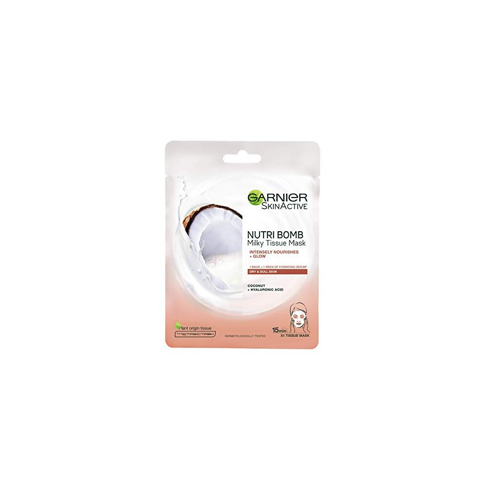 20 x Garnier Skin Active Nutri Bomb Milky Tissue Mask Coconut + Hyaluronic Acid